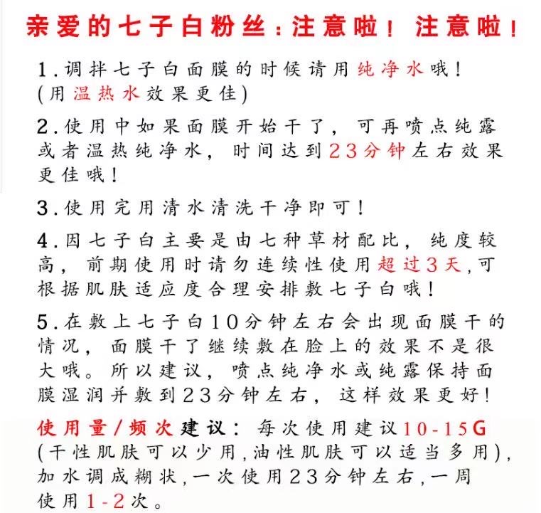 七子白粉 (面膜粉) Seven White Natural Herbs Facial Mask Powder, Firming and Brightening skin 6.5 oz quantity