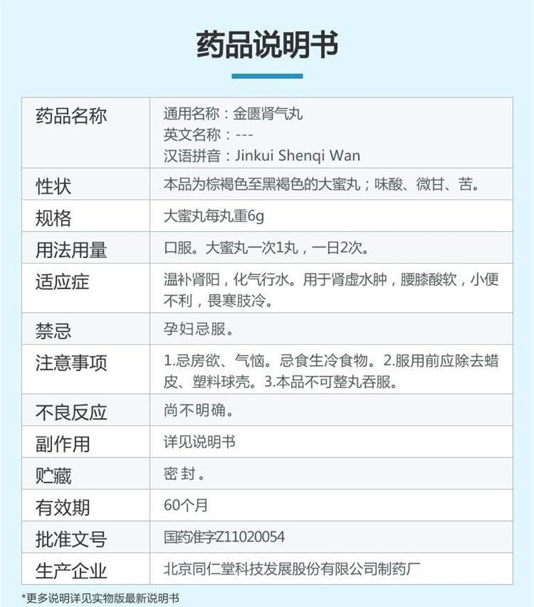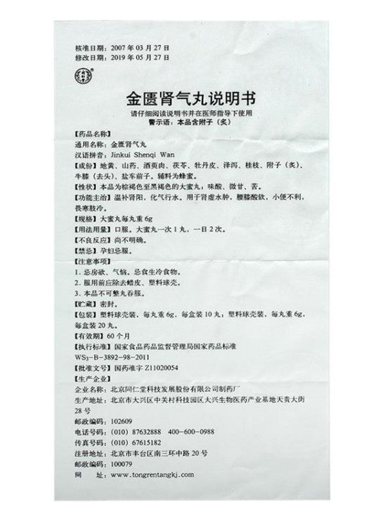 同仁堂 金匮肾气丸 Tongrentang JinKuiShenQi Wan 10 Giant Pills quantity