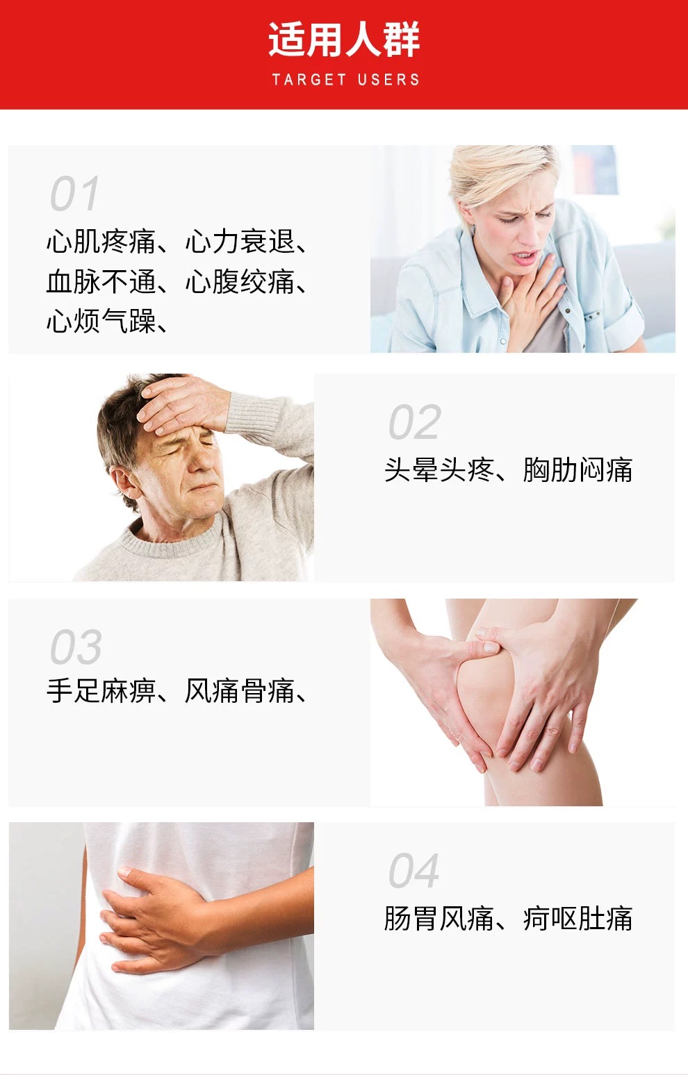 幫助纾緩心胃氣痛,腰酸背痛