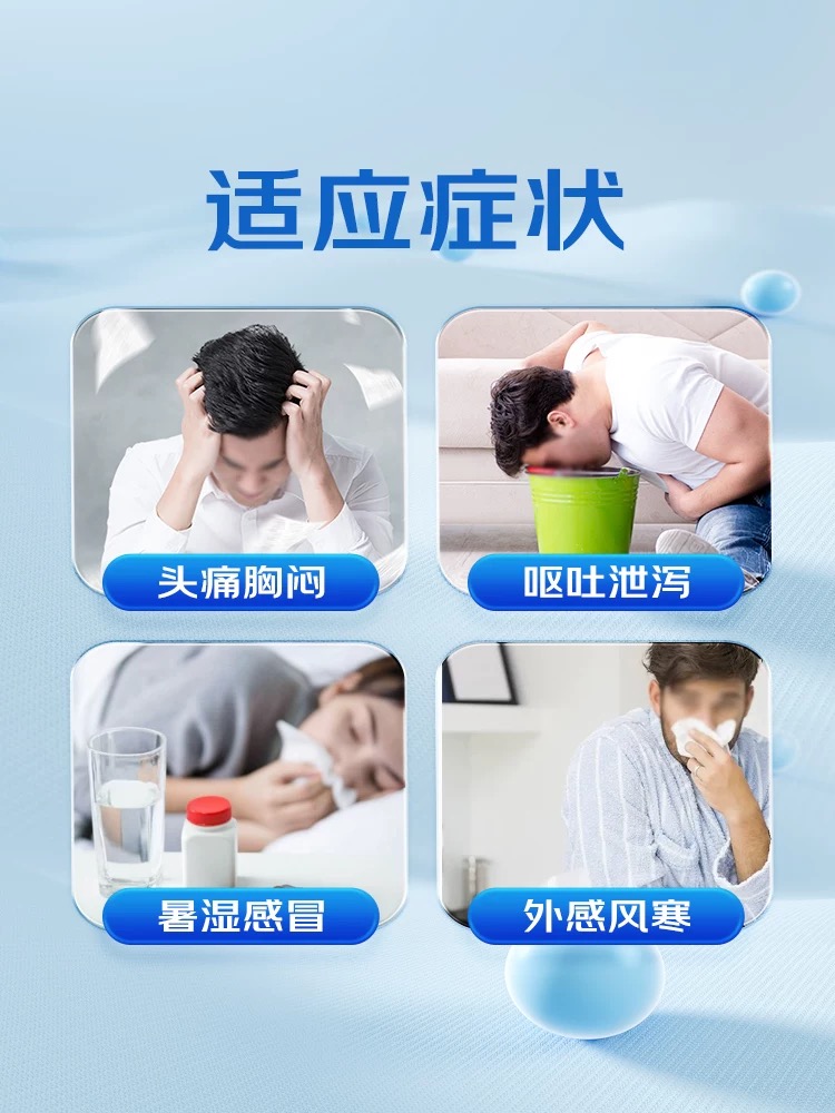 To release exterior, resolve dampness, regulate qi and harmonize the internal. To relieve cold caused by externally contracted wind-cold or internal dampness stagnation or summer dampness manifested as :