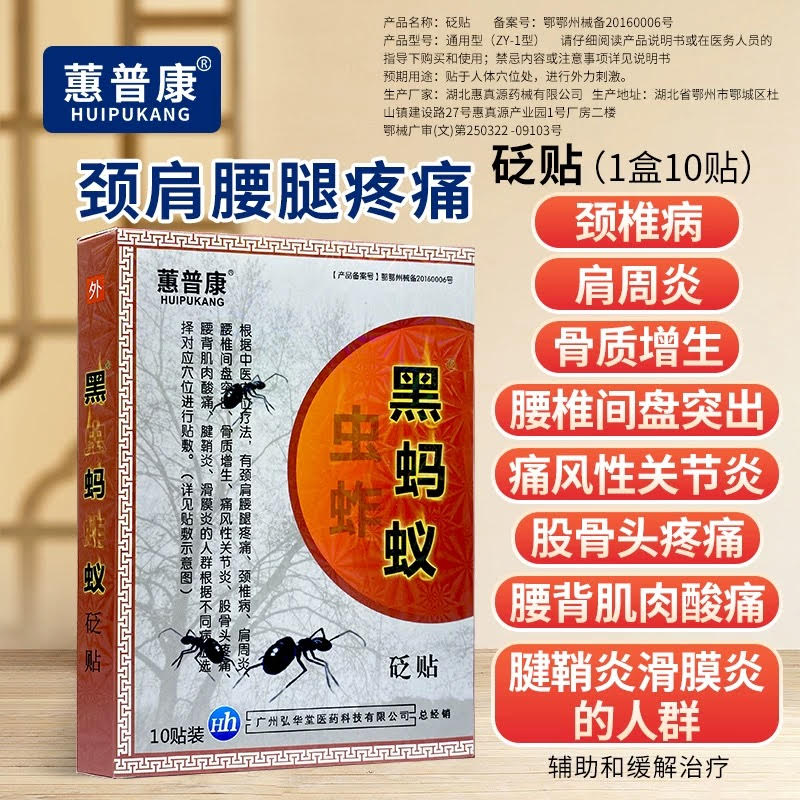 蕙普康黑蚂蚁 砭帖 止痛贴 Heimayi Biantie pain relief plaster 10pc