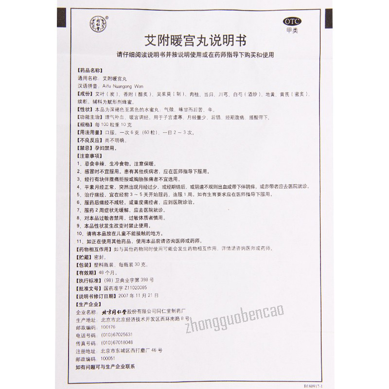 艾叶, 香附, 吴茱萸, 肉桂, 当归, 川芎, 白芍,