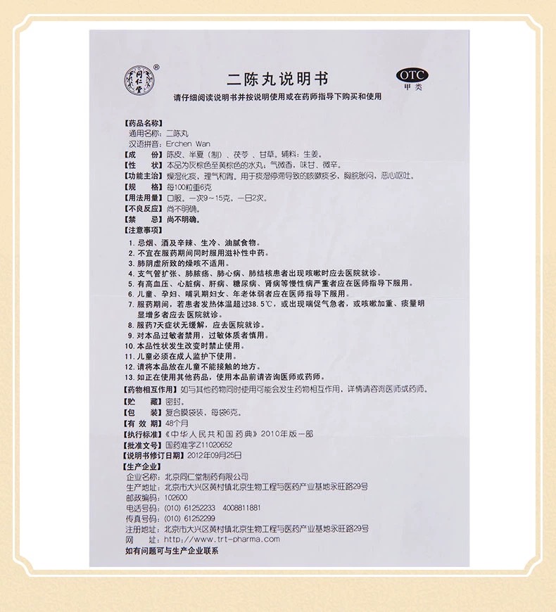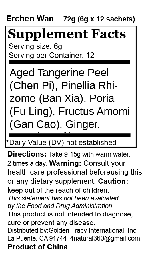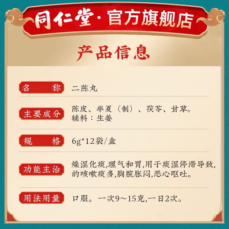 Tongrentang Er Chen Wan Herbal Supplement 6g x 12 Sachets 同仁堂 二陈丸