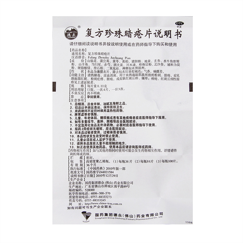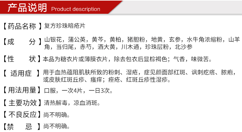 复方珍珠暗疮片,中成药名。为清热剂,具有清热解毒,凉血消斑之功效。主治血热蕴阻肌肤所致的粉刺、湿疮,症见颜面部红斑、粉刺疙瘩、脓疱,或皮肤红斑丘疹、瘙痒;痤疮、红斑丘疹性湿疹见上述证候者。