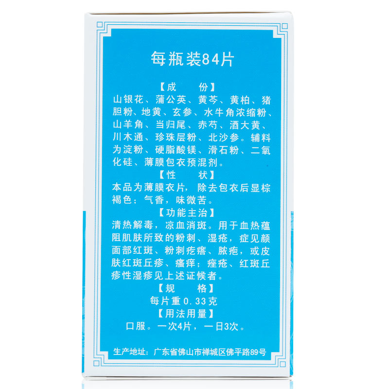 用于血热蕴阻肌肤所致的粉刺、湿疮,症见颜面部红斑、粉刺疙瘩、脓疱,或皮肤红斑丘疹、瘙痒;痤疮、红斑丘疹性湿疹。