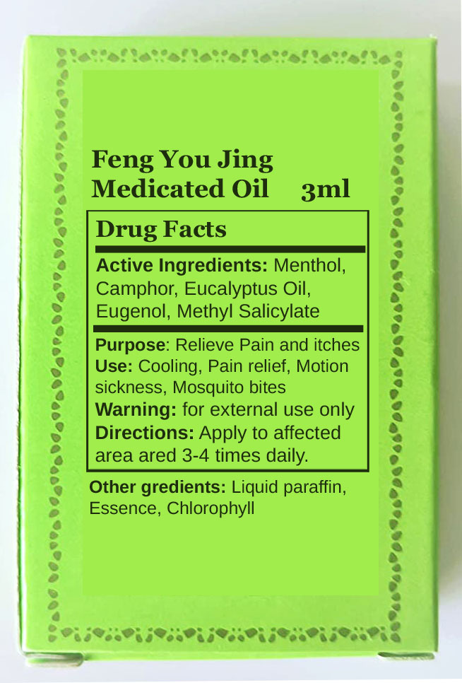 • Relieve the stuffy feeling associated with mucositis, cold or flu and relieve headache.Feng You Jing Medicated Oil Relief of Mosquitoes Bites