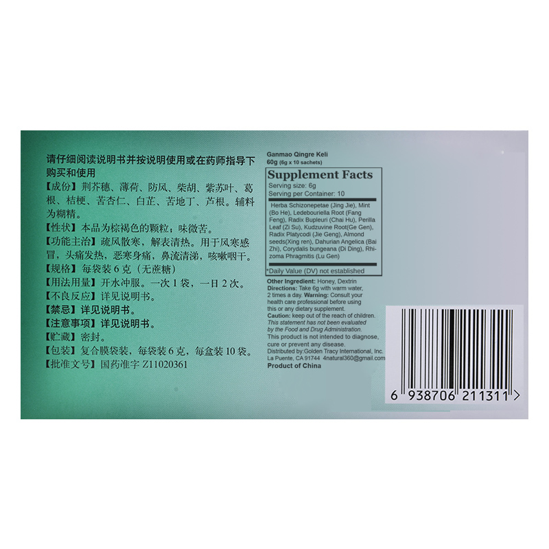 It is used for colds, headaches and fever, aversion to cold and body pain, runny nose, cough and dry throat. 功能主治:疏风散寒,解表清热。