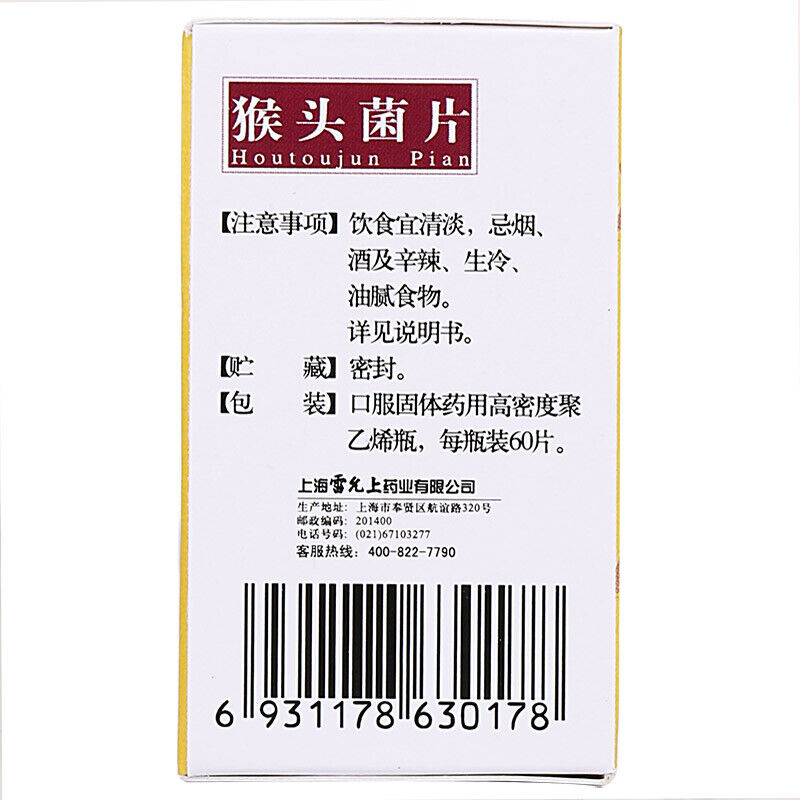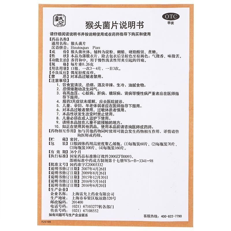 猴头菌丝体。辅料为淀粉、糊精、硬脂酸镁、蔗糖。