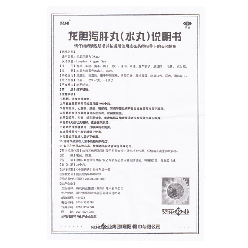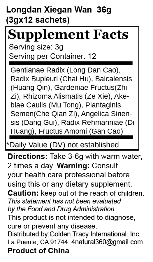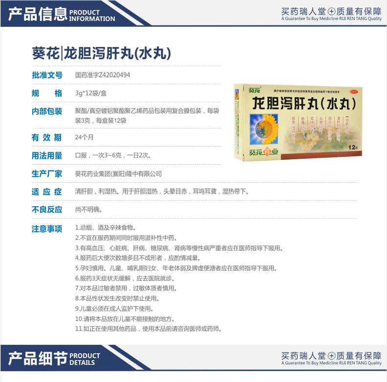 葵花 龙胆泻肝丸 Lung Tan Xie Gan Pill 3g x12 sachets quantity