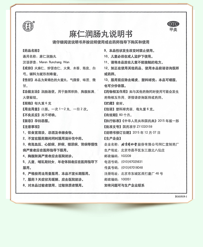 TongRenTang Maren Runchang Wan 同仁堂 麻仁润肠丸 hot Stomach Constipation 6g x 10 Giant pills