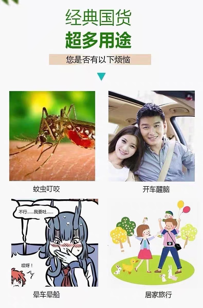It is effective in relieving headaches or carsickness due to heat stroke; itching due to mosquito bites. It can keep the mosquito away.