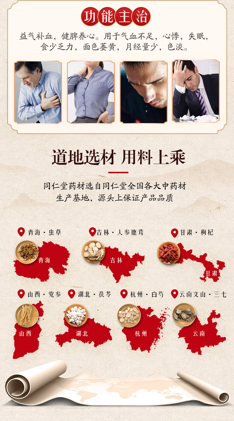 In traditional Chinese medicine, Ren Shen Gui Pi Wan pills have a beneficial effect on the circulatory system, improve heart function, awakening vital energy. Thus, they enrich the blood, improving the quality of Qi.