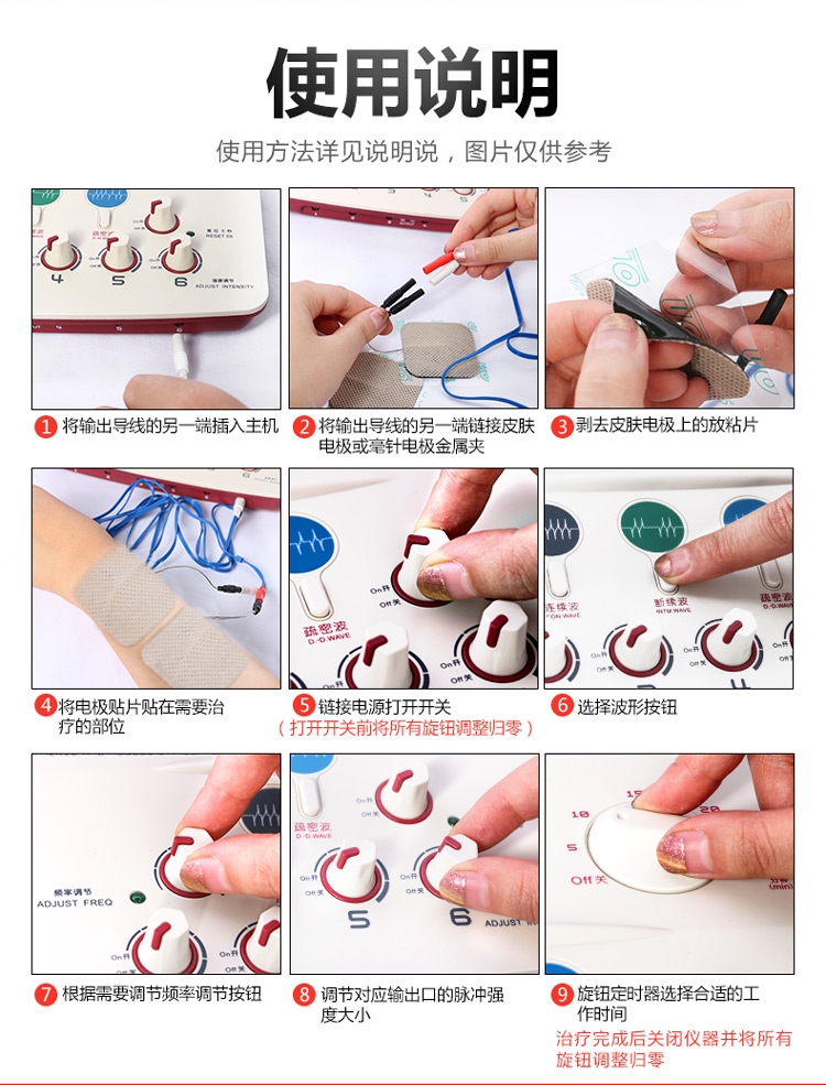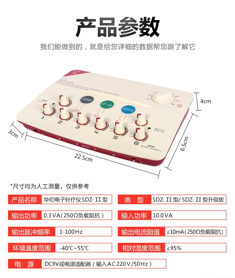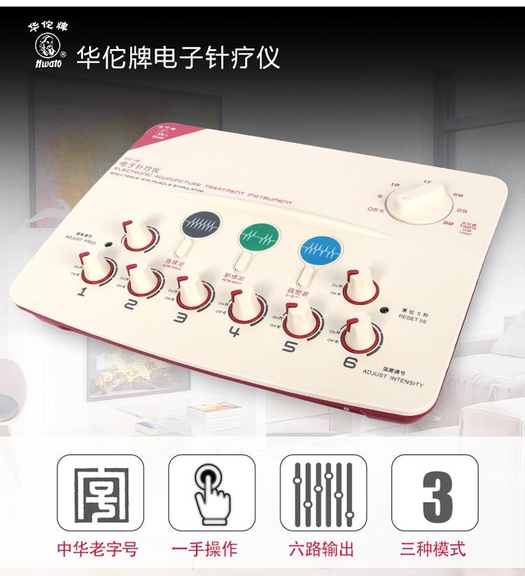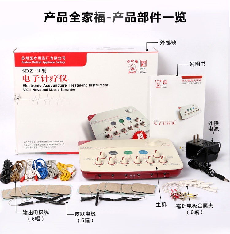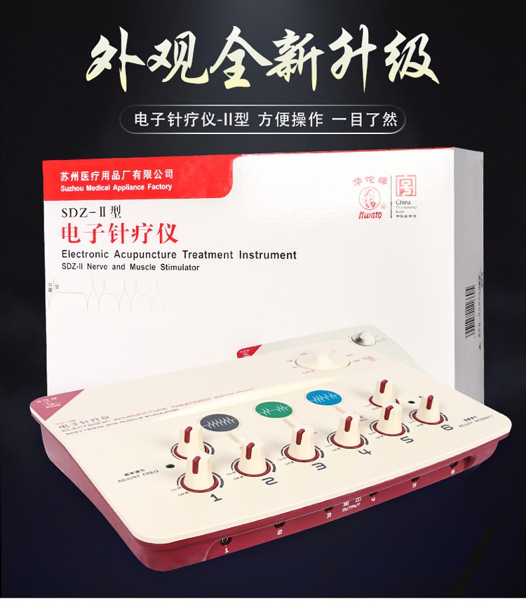 Introductions: Electronic Acupuncture Treatment Instrument( Nerve and Muscle Stimulator) is combined modern micro computer technique with traditional Chinese Medicine Acupuncture ad meridian Theory, based on the traditional KDZ series of electronic acupuncture treatment instrument. The device is used for applying low frequency pulse to stimulate the points of human body, may be used to apply an electrical current to electrodes on a patient’s skin to treat pain. This device doesn’t include acupuncture needles, combining with acupuncture needles in use. Main Functions: Replacement of hand massage Acupuncture therapy Six route output Multi-pulse wave frequency LCD Auto-timing Switch Battery for operation Techinical Data: Nerve and Muscle Stimulator / Electronic Acupuncture Treatment Instrument 1.Output Waveform: unsymmetrical dual directional pulse wave 2.Output Pulse Lines: 6 route 3.Operating Mode:Continuous Wave 4.Output Pulse width: 0.2ms 5.Output Current: 50mA(load 500 Omega ) 6. Power: DC9V 7. Volume: 35×23×10cm 8. Weight: 1kg(Main machine) Accessories: Six pieces of output electrode wires One user manual One certificate of product quality conformity One Shockproof foam box One AC adapter: Input: AC220V (Output:DC9V%)