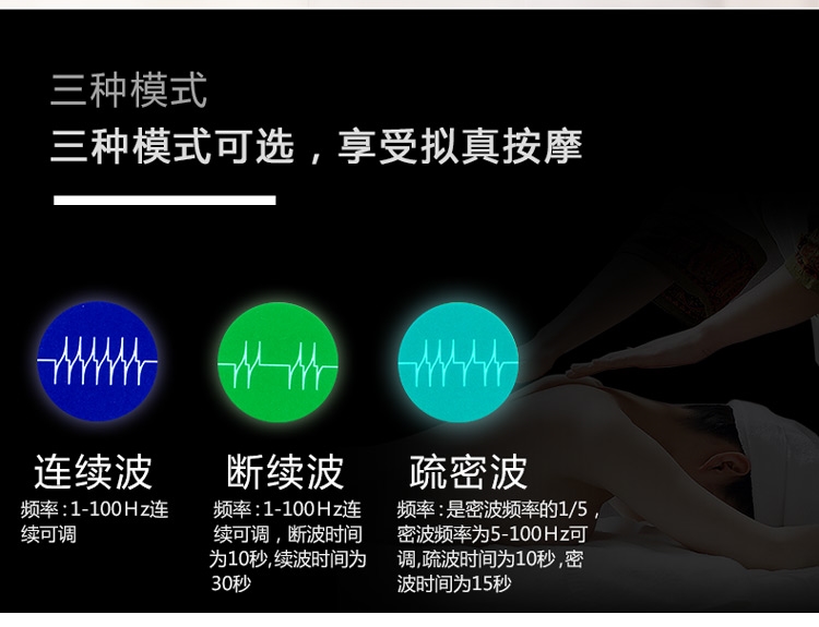 3 types of pulse waves to be selected: Continuous, intermit, and dense-disperse (modulated) waveforms