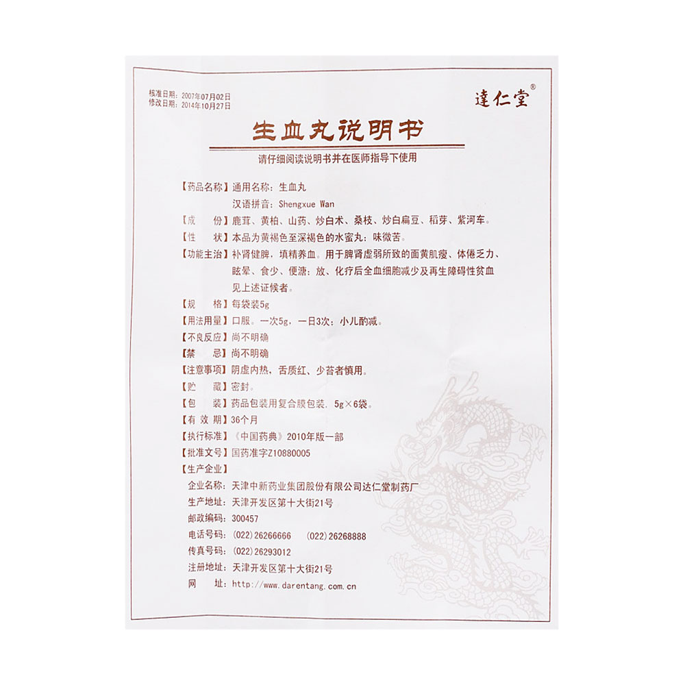 生血丸,中成药名。为补益剂,具有补肾健脾,填精养血之功效。
