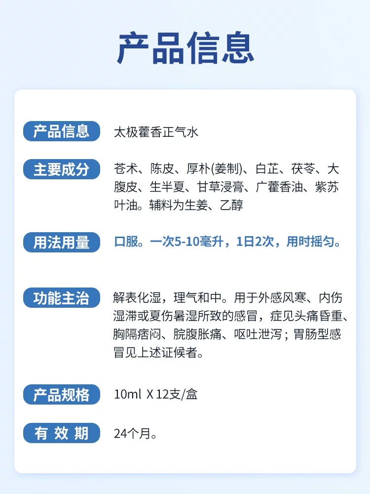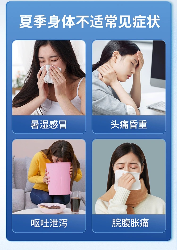 To release exterior, resolve dampness, regulate qi and harmonize the internal. To relieve cold caused by externally contracted wind-cold or internal dampness stagnation or summer dampness manifested as :
