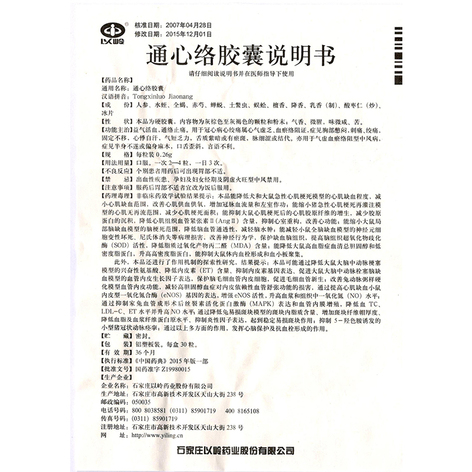 [Functions and Indications ] To replenish qi and promote blood circulation, and dredge meridians to kill pain. It is used for angina pectoris in coronary heart disease caused by a deficiency of heart-qi and blockage of meridians by stagnated blood with manifestations of constriction, fixed stabbing or colic pain in the chest, palpitation, spontaneous sweating, shortness of breath, lassitude, dark purple tongue or ecchymosis, thready and unsmooth pulse or knotted and intermittent pulse; stroke due to a deficiency of qi and stagnated blood blocking meridians with manifestations of hemiplegia or numbness of one side of the body, deviated mouth and tongue and dysphasia.